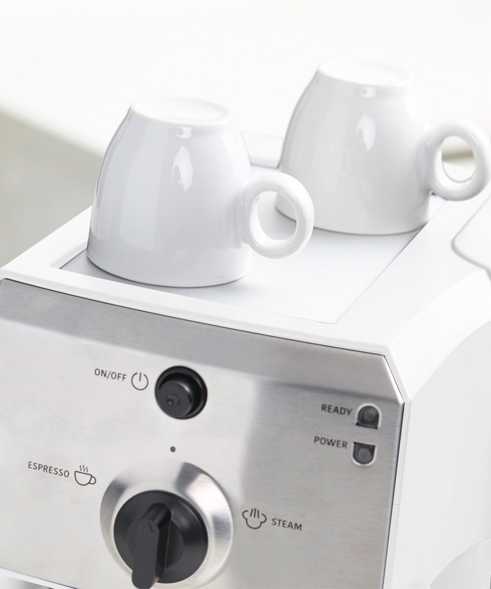 The machine includes a built-in steamer wand to froth milk so that you can make any coffee you desire. Coming with 2 x Ceramic Espresso Cups, warm them up before brewing with the built-in cup warming tray. With the see-through water tank, monitoring water levels takes only a glance.