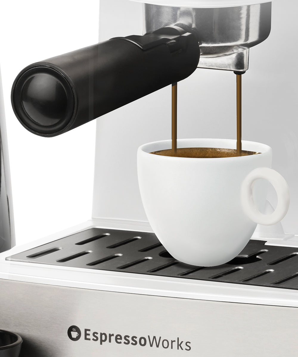 You are fully in control here. From grinding the beans to tamping them in, controlling the flow to steaming the milk – EspressoWorks 15-bar Espresso Machine lets you pick up the art of making coffee and simplifies it.